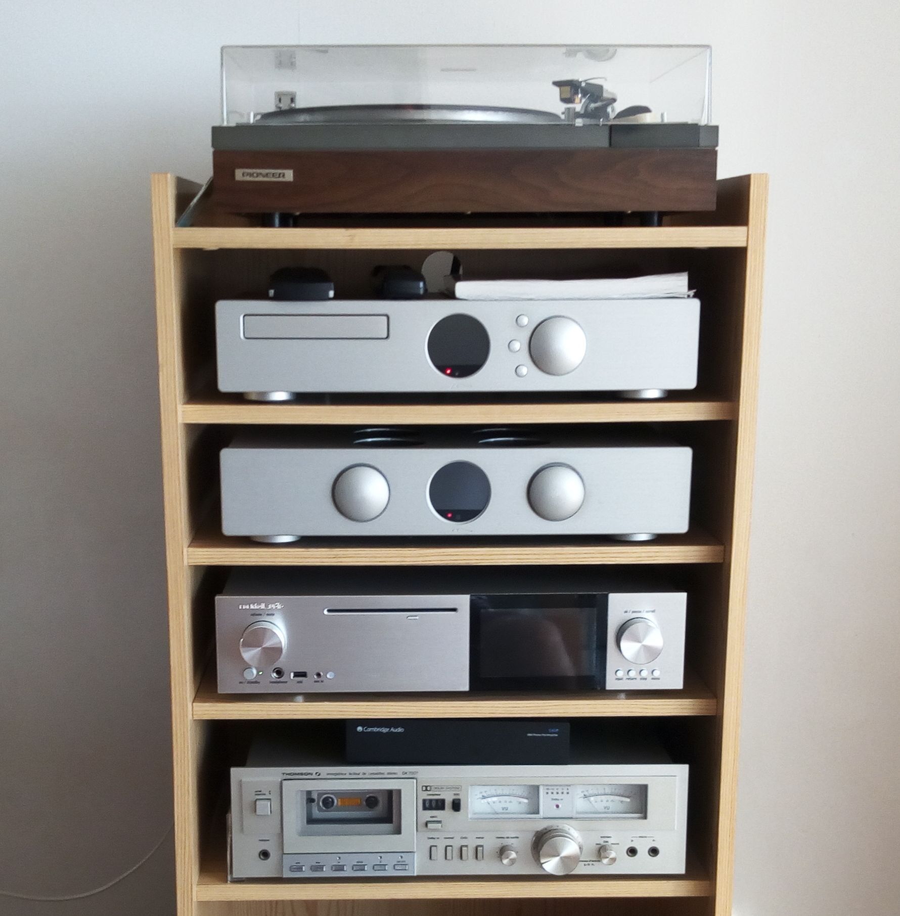 Intégré CAIRN 4808 NF, CD CAIRN FOG2, serveur Cocktail Audio X40, HP  JM Reynaud Studio 2, platine TD PIONEER PL 112 D, cellule SUMIKO Pearl, pré  Cambridge 540P