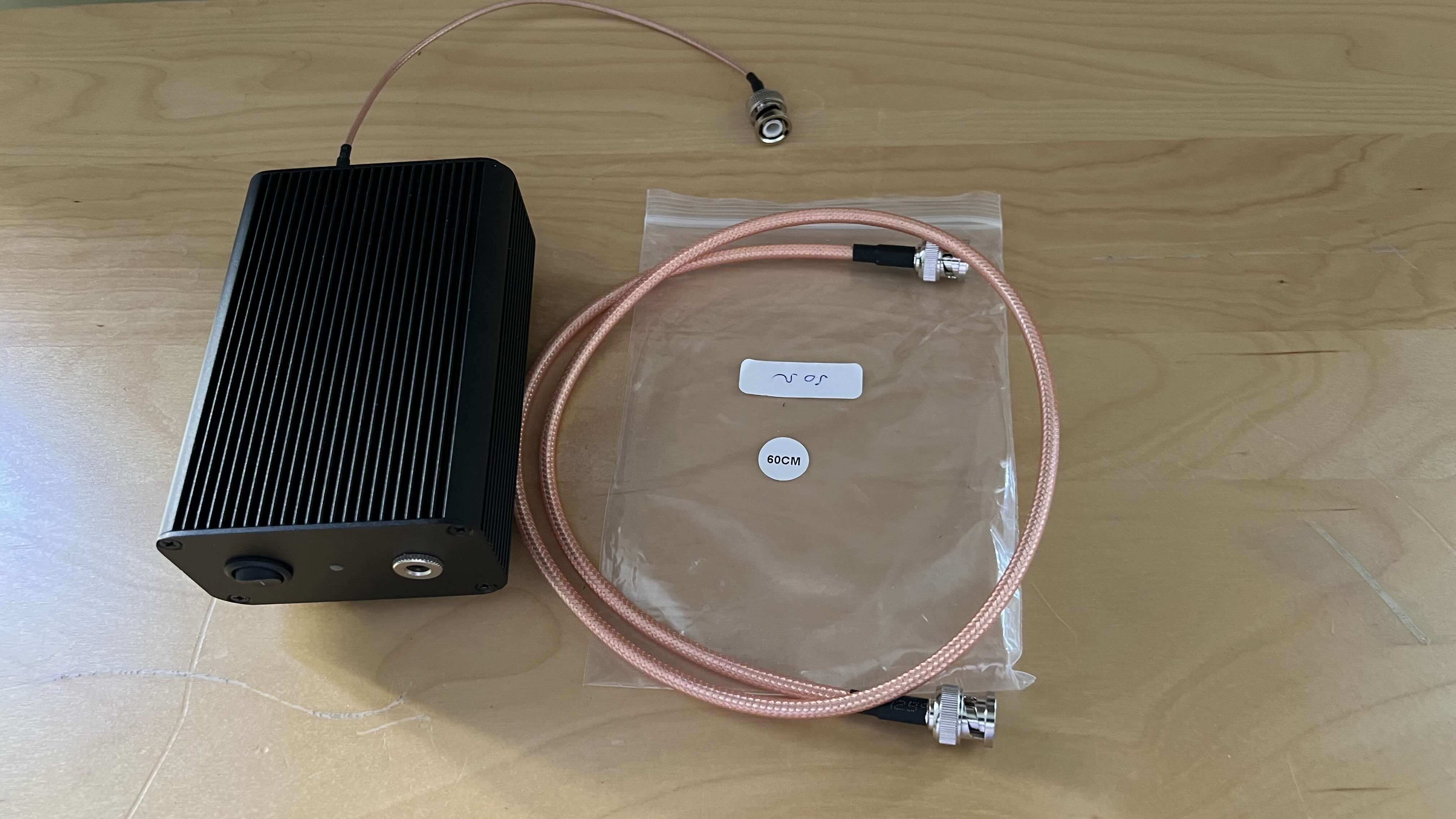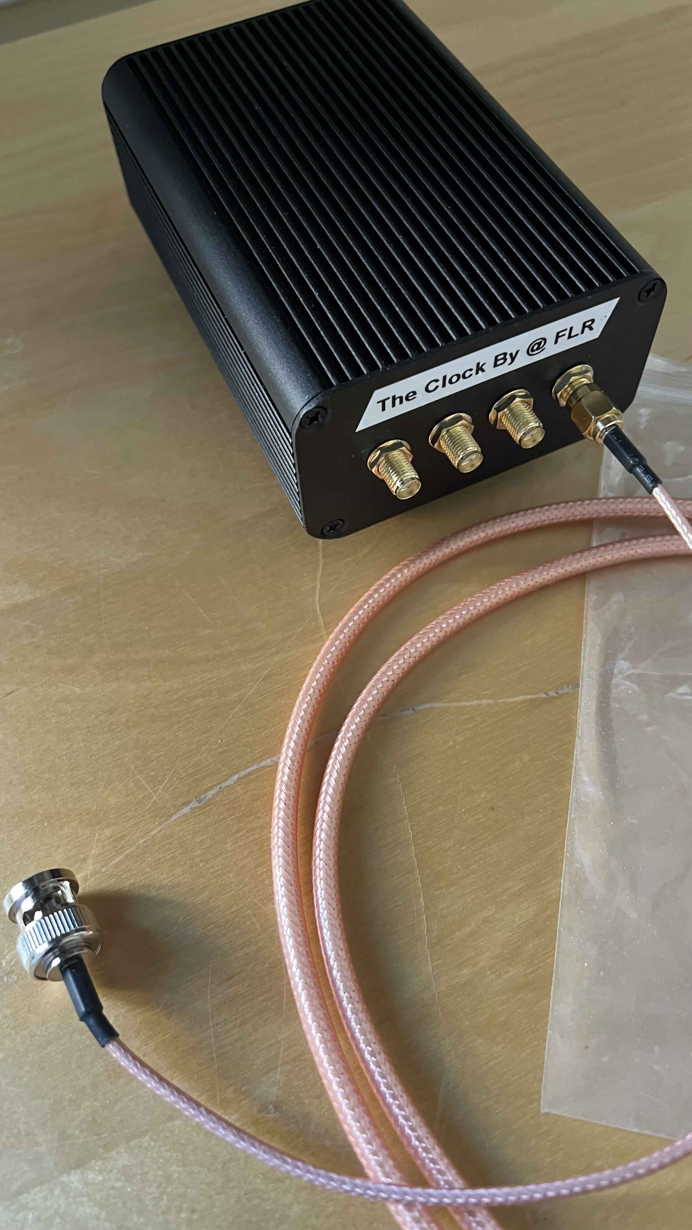 Si ce n'est que c'est bien un signal sinusoidal, connectiques en sorties SMA. On y met un câble SMA > BNC ou un adaptateur SMA/BNC.
